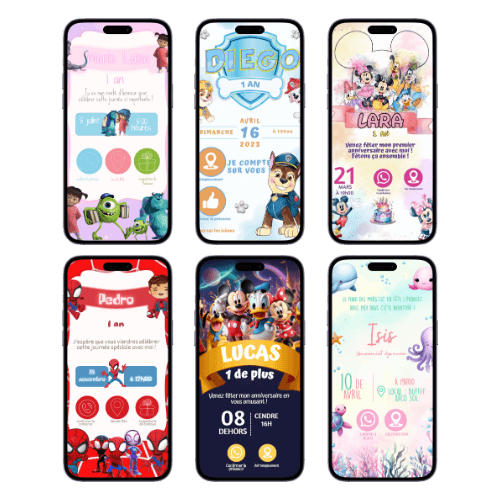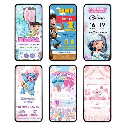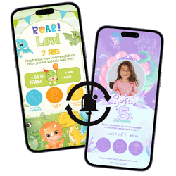 Plus de 250 invitations animées avec des designs irrésistibles inspirés des thèmes les plus populaires et classiques.